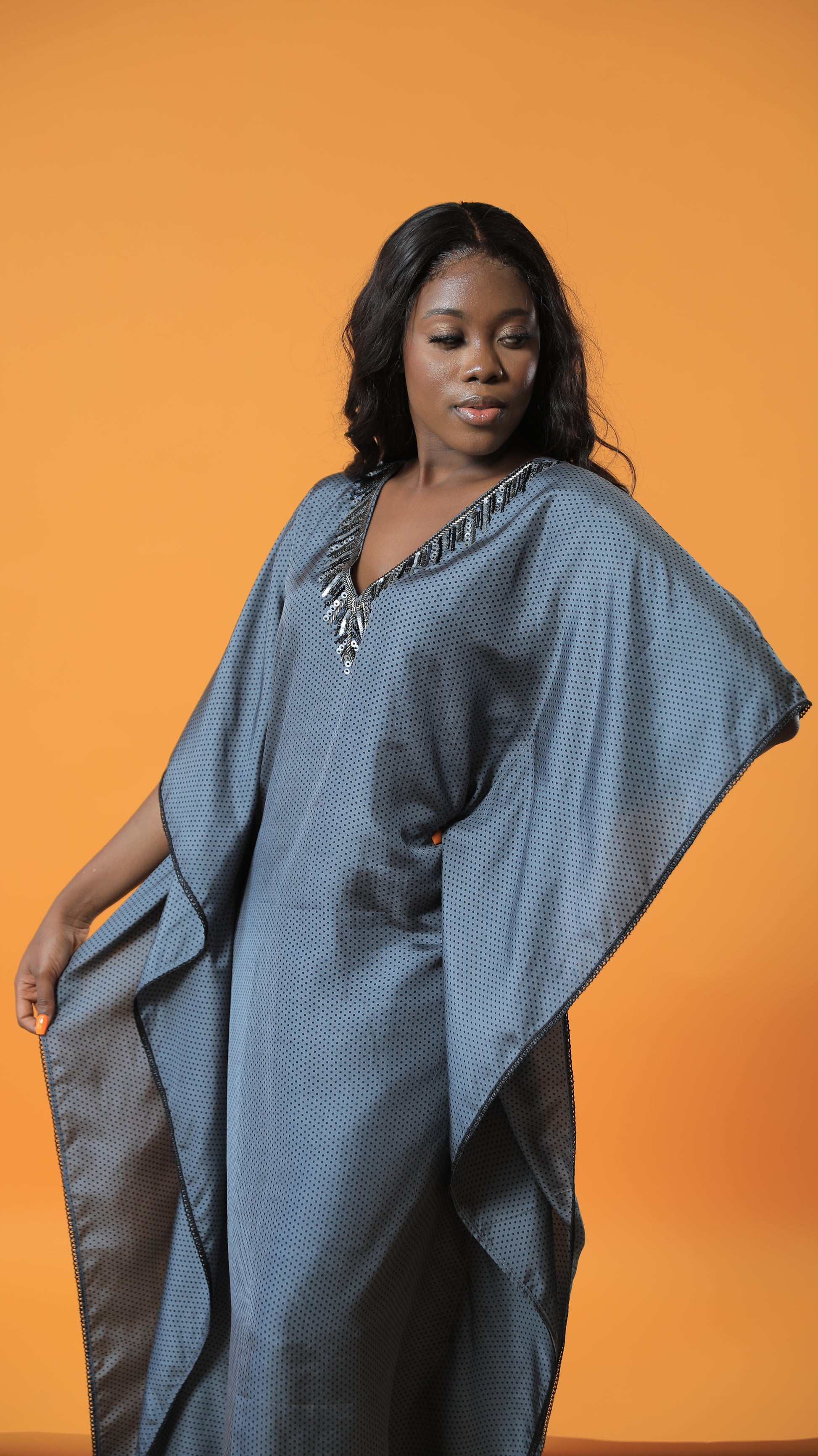With its stunning polka dot design and flowing silhouette, the Camellia Kaftan Dress is the epitome of elegance and style. The airy and graceful design allows it to effortlessly complement any body type, making every wearer feel confident and beautiful.