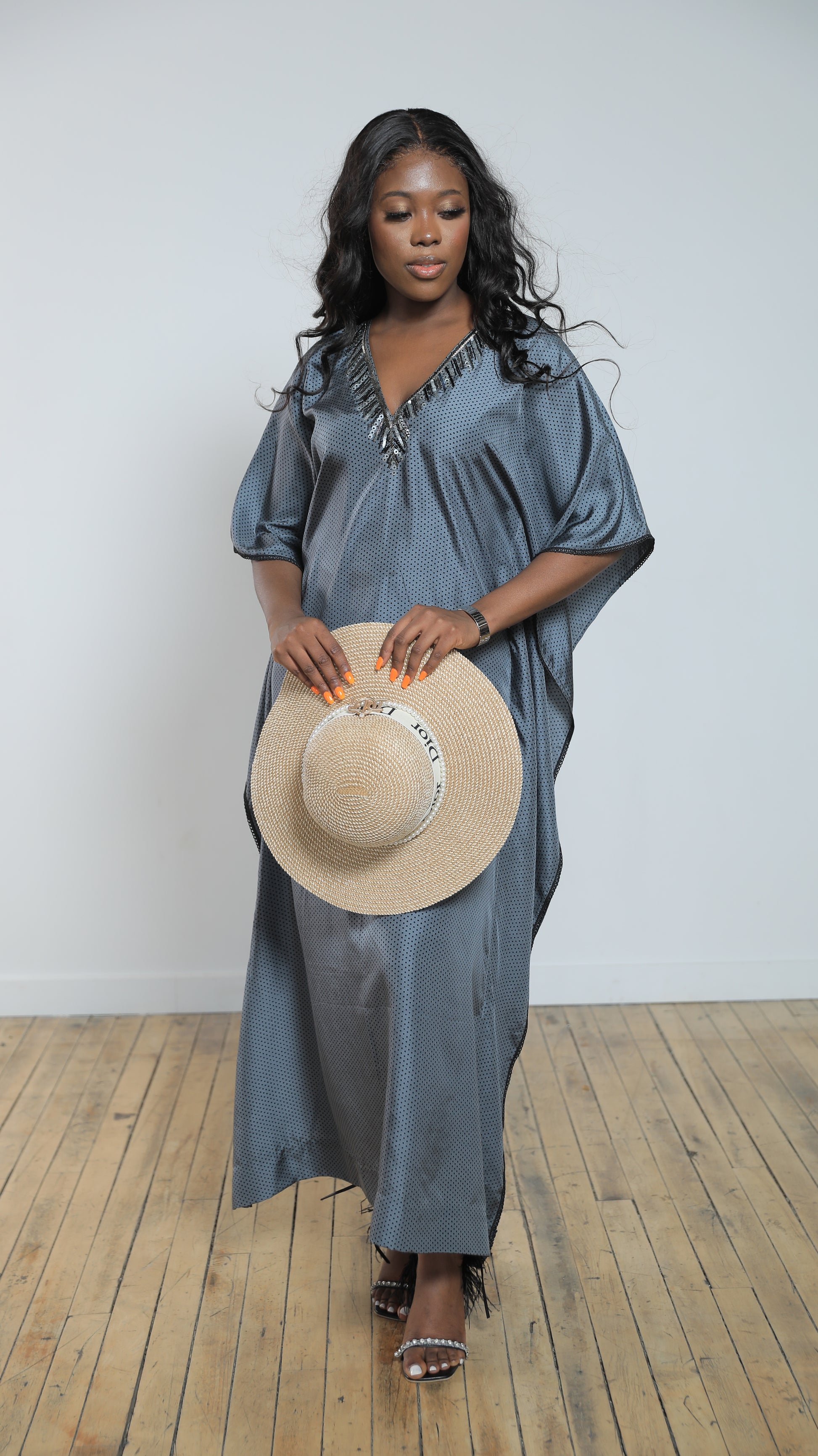 Perfect for a beach party or any special occasion, this kaftan dress will undoubtedly turn heads and capture hearts. Embrace the luxurious feel of silk against your skin and revel in the artistry of the hand-embroidered details. The Camellia Polka Dot Kaftan Dress is a timeless treasure that will make you feel like a true fashion icon.