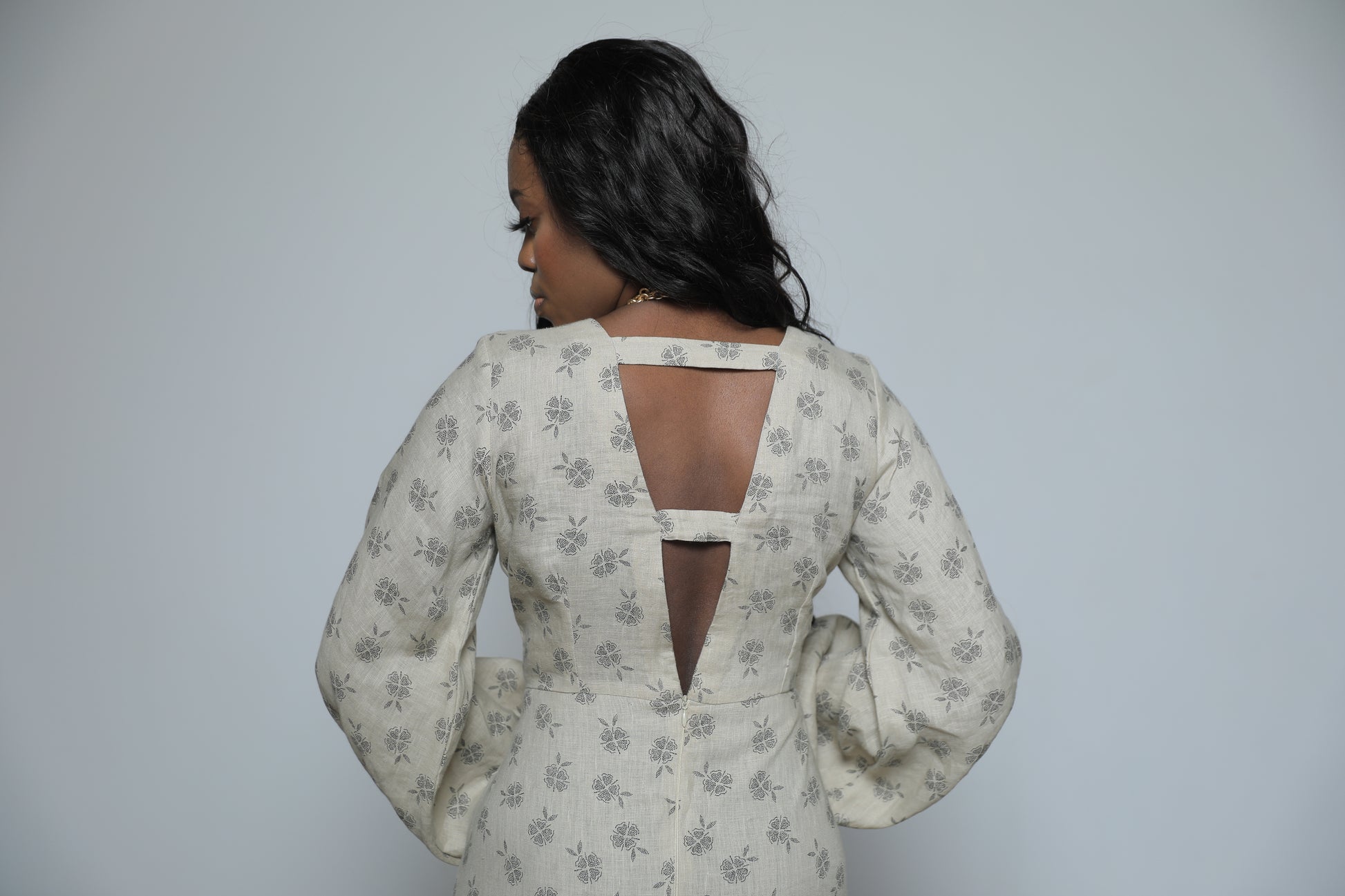 Introducing our classic and elegant 100% Linen Diana long dress in a beautiful beige print. This exquisite dress embodies timeless sophistication and refined style, making it a must-have addition to your wardrobe.